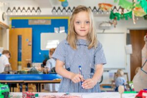 The school opens at 8am for supervised play and the bell rings for lessons at 8.35am. Lessons come to a close at around 3pm for the youngest children and 4pm for pupils in Year 6. Our flexible ‘late class’ runs until 4.30pm without any booking required.